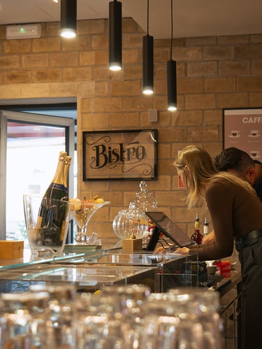 Al Bistrot Dea ti accogliamo in un ambiente dal design industriale con dettagli pop e tocchi colorati che trasmettono subito energia e spensieratezza. Un'atmosfera elegante ma informale, ideale sia per una pausa veloce che per una serata speciale.